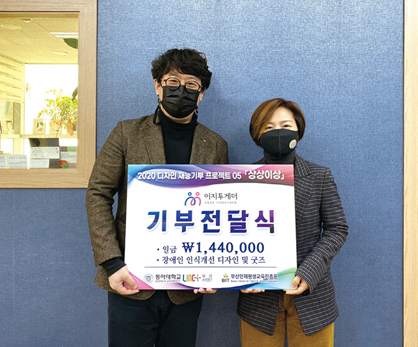동아대 LINC사업단·산업디자인학과, ‘디자인 재능기부’ 수익금 비영리민간단체(NPO)에 기부
