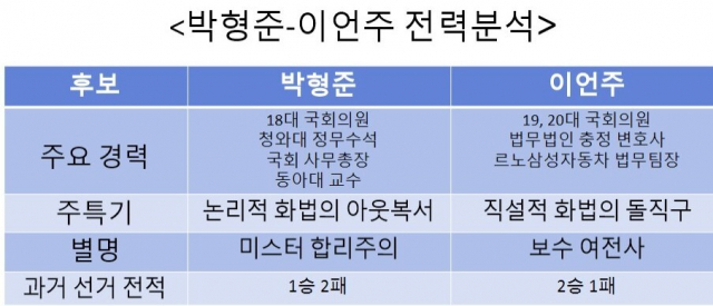 온화하고 논리적인 화법으로 알려진 박형준 예비후보는 JTBC 토크쇼 '썰전'을 비롯한 여러 TV토론 등에서 다져진 탄탄한 말솜씨와 현안을 정확하게 꿰뚫는 내공으로 승부에 나설 것으로 보인다.