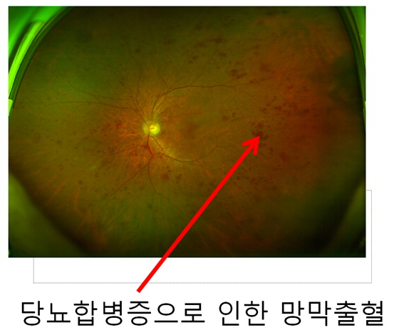 당뇨합병증에 의한 눈 질환에는 당뇨망막병증, 당뇨병성 백내장, 녹내장, 마비사시, 시신경질환 등이다.
