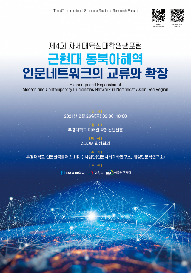 부경대학교 인문한국플러스(HK+)사업단(단장 손동주)이 26일 오전 9시 ‘제4회 차세대육성대학원생포럼’을 온라인으로 개최한다.