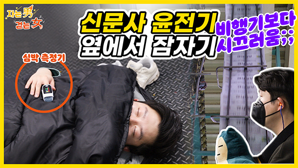 잠 대신 '잡생각'만 쏟아졌다. '윤전기 돌아가는 걸 사람들이 관심을 가질까?', '이 곳의 소음을 이분들은 어떻게 견디지?' '오늘 저녁 뭐 먹지' 하는 생각도 잠시 들었다. 돼지국밥, 햄버거, 좋아하는 음식들이 떠오르던 찰나. PD가 용을 깨운다. "못 잔 거 압니다, 일어나이소." 최신 심박측정기는 용의 심박을 일정하게 90으로 기록하고 있었다.