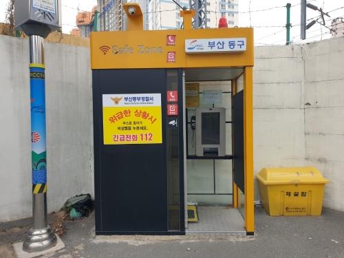 8일 동구청에 따르면 구청은 매축지마을, 경남여고 앞, 증산공원 등 3곳에 안심부스를 설치해 운영 중이다. 안심부스는 여성·아동 등 범죄취약계층을 위한 비상대피소로 위급상황 시 이곳으로 대피해 비상 버튼을 누르면 자동으로 문이 잠기며 인근 지구대에 신고가 접수된다. 구청은 범죄 가능성 등을 고려해 경찰과 해당 장소를 지정했고, 2017년 재난관리기금 1800만 원을 들여 안심부스를 이곳에 설치했다. 안심부스는 부산에서 유일하게 동구에 설치됐다.
