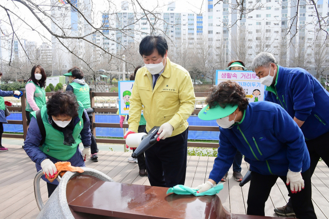 부산 동래구(구청장 김우룡)는 봄철을 맞아 코로나19 확산 방지를 위해 김우룡 동래구청장이 참석한 가운데 동래구새마을지회, 자유총연맹 구지회 회원 등 20여명이 참여하여 온천천 카페거리 및 주변상가 등 다중집합지에서 방역활동 및 마스크 착용, 거리두기 등 코로나19 예방 캠페인도 함께 실시하였다.