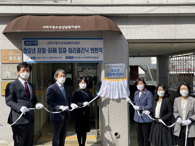 한편 한국청소년상담복지개발원은 3월11일(목) 집중 심리클리닉 확대 실시에 발맞춰 부산광역시 사하구청소년상담복지센터(센터장 황윤미)를 방문하여 「자살‧자해 집중 심리클리닉」 현판을 전달했다. 한국청소년상담복지개발원 이기순 이사장은“작년 한 해 동안 전국 집중 심리클리닉 개입으로 자살‧자해 문제를 가진 청소년들이 일상으로 복귀할 수 있었다. 올해 확대 운영되는 집중 심리클리닉 사업으로 지역사회 내 고위기 청소년들의 문제 해결과 건강한 성장에 도움이 되기를 바란다”고 말했다.