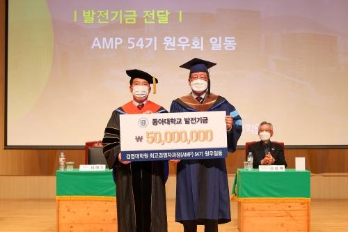 동아대학교 경영대학원 최고경영자과정(AMP) 54기 원우회(회장 황소용)는 최근 수료식을 가지고 대학발전기금 5000만 원을 전달했다.