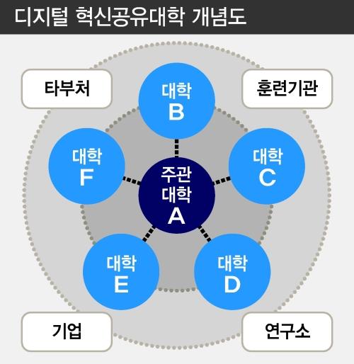 올해부터 추진하는 디지털 혁신공유대학은 수도권과 비수도권 대학이 컨소시엄을 구성해 신기술 분야 연구를 공동으로 수행하고 관련 인재를 양성하는 사업이다. 교육부가 지정한 8개 신기술 분야는 △인공지능(AI) △빅데이터 △차세대 반도체 △미래자동차 △바이오헬스 △실감미디어(증강·가상현실) △에너지 신산업(신재생에너지) 등이다. 교육부는 각 분야에 100억 원 이상 투입할 예정이다. 사업 참가 대학들은 보유한 첨단 기자재 등 자원을 공동 활용하고, 교원, 관계기관, 전문가가 참여하는 협의체를 구성·운영한다.