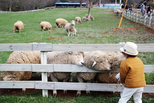 15일 경남 산청군 단성면 청계리 양떼목장을 찾은 가족들이 양 먹이 주기 체험을 하고 있다. 8만여㎡에 조성된 승마장과 양떼 목장에서는 양 젖짜기와 승마체험 등을 할 수 있다. 산청군 제공
