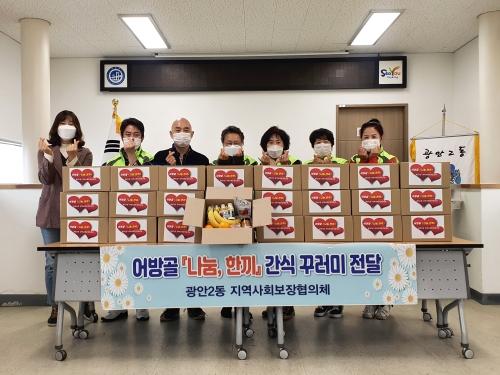 부산 수영구 광안2동 지역사회보장협의체(위원장 이점석)는 최근 고위험가구 30세대에 봄맞이 영양 간식 꾸러미를 전달했다.