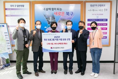부산 북구청(구청장 정명희)이 17일 부산시 ‘청년 프로그램 지원 사업’ 공모에 3개 사업이 최종 선정돼 사업비 총 4300만 원을 확보했다.