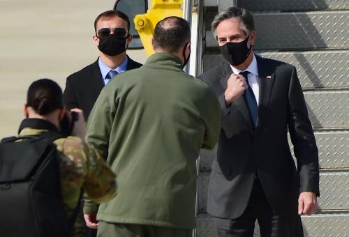미국 바이든 정부 출범 후 첫 방한한 미 외교안보 ‘투톱’ 토니 블링컨(왼쪽) 국무장관과 로이드 오스틴 국방장관이 17일 오산 공군기지에 각각 도착하고 있다. 이들은 정의용 외교장관, 서욱 국방장관과의 회담을 통해 대북 정책과 한·미·일 공조, 대중 압박 등 한·미 외교안보 정책의 틀을 논의할 것으로 보인다. 연합뉴스
