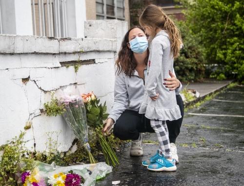 17일(현지시간) 미국 조지아주 애틀랜타의 마사지업체 ‘골드 스파’ 앞에서 한 시민이 딸과 함께 전날 이곳에서 발생한 총격 사건의 희생자들을 애도하며 조화를 놓고 있다. AP연합뉴스미국 애틀랜타 마사지숍과 스파 3곳에서 잇따라 발생한 총격사건과 관련해 미국 각계각층에서 애도 물결이 이어졌다.