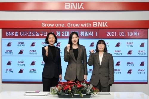 여자 프로농구 부산 BNK 썸 신임 감독으로 선임된 박정은(가운데) WKBL 경기운영본부장이 변연하(왼쪽), 김영화 코치와 취임식에서 포즈를 취하고 있다. BNK 썸 제공여자프로농구 부산 BNK 썸의 새 사령탑에 박정은 한국여자농구연맹(WKBL) 경기운영본부장이 선임됐다. BNK는 18일 구단 유튜브 채널을 통해 제2대 감독 취임식을 중계하며 “박정은 신임 감독을 팀의 제2대 사령탑에 선임했다”고 발표했다.