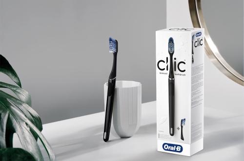 한국P&G의 구강 관리 전문 브랜드 오랄-비는 칫솔모만 교체해도 지속적인 사용이 가능한 프리미엄 칫솔, ‘클릭(Clic)’(사진)을 출시했다. 일반 칫솔 대신 클릭을 사용하면 3개월 기준, 플라스틱 폐기물 배출량을 최대 60%까지 감소시킬 수 있다.