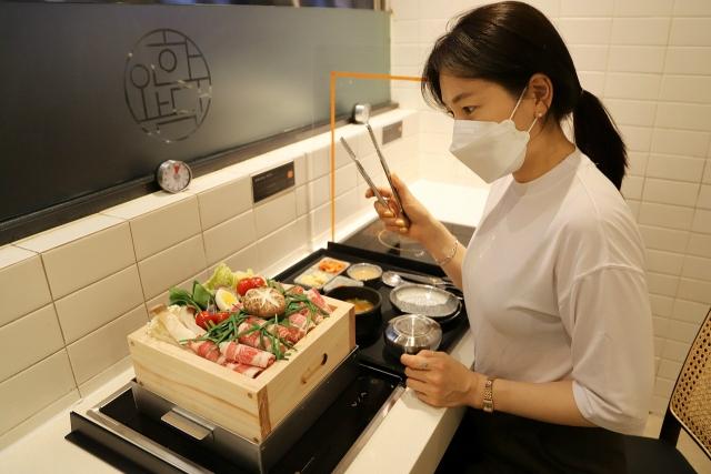 신세계 센텀시티 지하 1층에 숙성 한우 명가 ‘한와담 소반’이 문을 열었다. 혼자 온 고객도 시그니처 메뉴인 ‘편백나무찜’을 편하게 먹을 수 있도록 ‘1인 전용 공간’이 마련돼 눈길을 끌고 있다. 신세계 센텀시티 제공