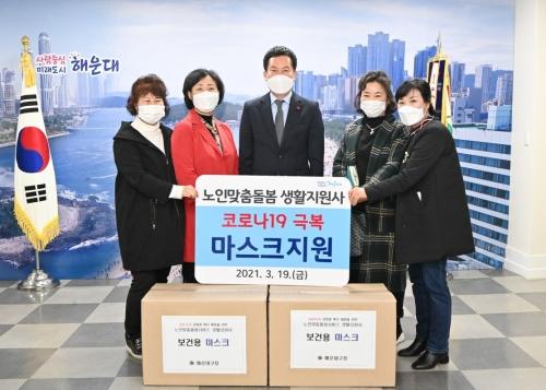 부산 해운대구청(구청장 홍순헌)은 최근 어르신과 종사자의 안전을 위해 노인 맞춤 돌봄 서비스 생활지원사에게 코로나19 예방 마스크를 지원했다.