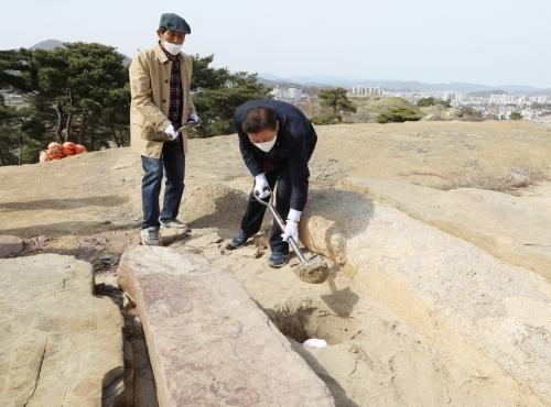 경남 함안 말이산 고분군 13호분 복원을 위해 관계자들이 고유제를 지내고 있다. 함안군 제공유네스코 세계유산 등재를 추진 중인 함안 말이산 고분군의 13호분 복원(정비)사업이 본격화됐다.