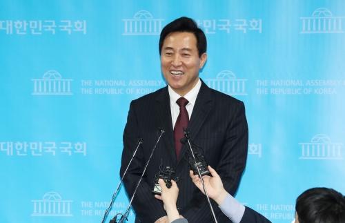 서울시장 보궐선거 야권 단일 후보로 선출된 국민의힘 오세훈 후보가 23일 국회 소통관에서 취재진의 질문에 답변하고 있다. 김종호 기자 kimjh@‘김영춘과 박영선’, ‘박형준과 오세훈’으로 더불어민주당과 국민의힘 4·7 부산·서울시장 보궐선거 후보 라인업이 23일 확정됐다. 보수 야권 서울시장 후보 단일화를 통해 이날 안철수 후보를 이긴 오 후보가 최종 후보로 낙점되면서다. 서울시장 선거는 대선에 버금가는 사실상의 전국 선거라 오 후보 ‘등판’이 부산시장 선거 구도에도 어떤 영향을 줄 것인지에 관심이 쏠린다.