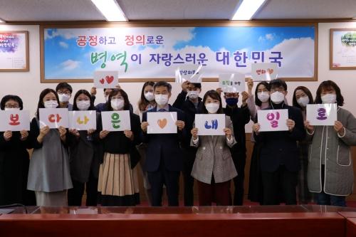 부산병무청(청장 윤주봉)은 지난 22일 소회의실에서 제5기 ‘보다나은 내일로 추진단’ 출범식을 가졌다. 2017년부터 운영하고 있는 ‘보다나은 내일로’ 추진단은 불편 사항을 발굴하고, 제도개선을 위해 매월 1회 이상 정기회의 등을 개최하고 있다. 윤 청장은 추진단원들에게 “국민이 공감하는 고품질 병무 서비스를 제공하도록 최선을 다해 달라”고 당부했다.임원철 선임기자