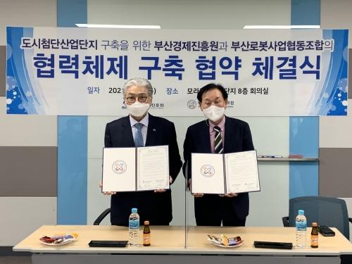부산로봇사업협동조합(이사장 유학현)과 부산경제진흥원(원장 박기식)은 최근 도시첨단산업단지 조성에 따른 로봇산업 육성 촉진 협력 협약을 체결했다.