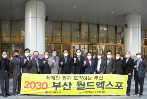 재부산강원도청장년회(회장 안정태)는 최근 부산 롯데백화점 센텀시티점 일원에서 ‘2030 부산 월드엑스포’ 유치를 위한 홍보 캠페인을 펼쳤다.