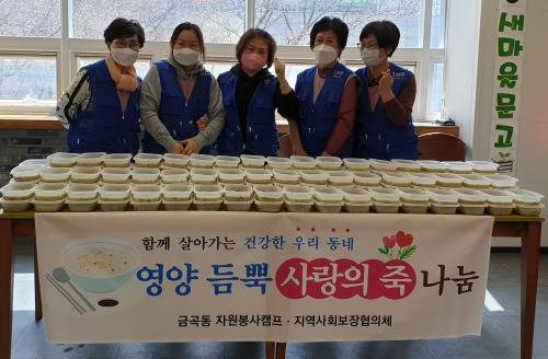 부산 북구 금곡동 자원봉사캠프(캠프장 이정숙)는 최근 취약 계층 80가구를 방문해 안부를 확인하고 직접 조리한 전복죽을 전달했다.