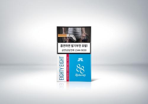 KT&G는 29일부터 ‘88 리턴즈(사진·88 Returns)’를 전국 편의점에서 판매한다. 88 리턴즈는 1987년에 첫 출시된 88의 맛을 재해석한 신제품이다. 88은 1988년 서울올림픽을 기념해 출시됐다. 88 브랜드는 1988년부터 1995년까지 8년 동안 국내 시장에서 가장 높은 판매량을 기록한 제품이다.