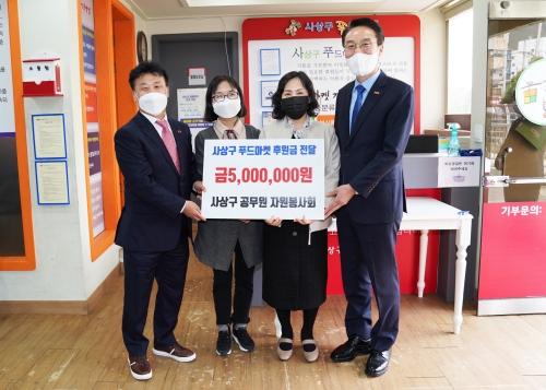 부산 사상구 공무원자원봉사회(회장 박지선)는 최근 결식 우려 취약 계층을 돕기 위해 사상구 푸드마켓에 후원금 500만 원을 전달했다.