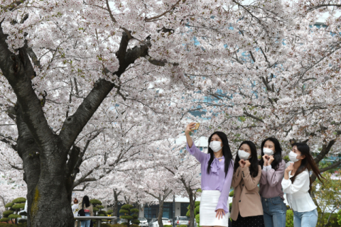 부경대 ‘미세먼지에도 빛난 캠퍼스 벚꽃 풍경’