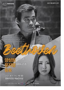 양성원 문지영 듀오 ‘베토벤’=4월 1일 오후 7시 30분 영화의전당 하늘연극장. 첼리스트 양성원과 피아니스트 문지영이 베토벤을 주제로 연주하는 듀오 공연(공연 포스터). 첼로의 신약성서라 불리는 베토벤의 첼로 소나타 네 작품을 선보일 예정. 2만~4만 원. 051-780-6060.