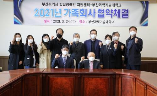 부산과학기술대학교(총장 강기성)와 부산광역시발달장애인지원센터(센터장 현광희)는 최근 교내 본관 중회의실에서 가족회사 협약을 체결했다.