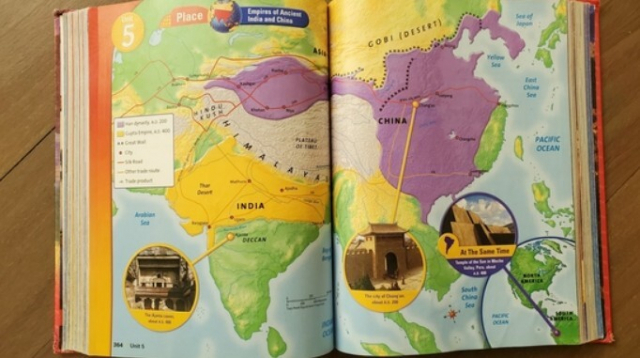 "한국은 중국이었다"라는 내용을 담은 미국 유치원(초등학교) 역사 교과서 내용이 논란이다.