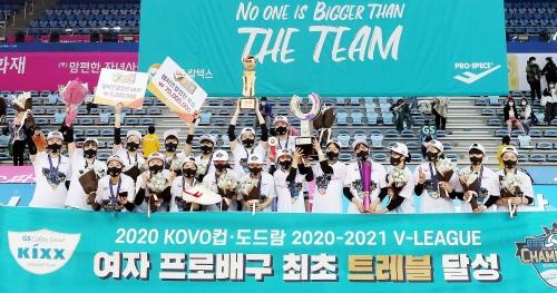 GS칼텍스 여자배구 첫 ‘트레블’… 고개 떨군 김연경