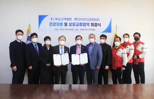 부산광역시사회체육센터(이사장 배영호)와 부산고려병원(이사장 김철)은 최근 센터 회원과 직원의 의료 지원을 위한 업무 협약식을 했다.