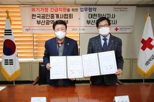 한국공인중개사협회 부산지부(지부장 유병규)와 대한적십자사 부산지사(회장 서정의)는 최근 건전 기부 문화 확산과 사회적 약자 지원을 위한 업무 협약을 체결했다.