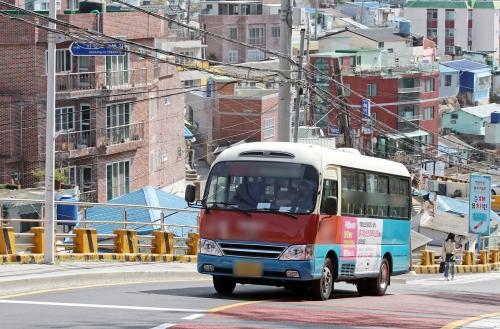 부산 동구 범일동 일대를 운행 중인 마을버스. 코로나19로 지난해 부산의 마을버스 업체 10곳 중 8곳이 적자를 기록했다. 김경현 기자 view@코로나19 장기화로 대중교통 이용률이 급감하면서 부산지역 마을버스 업체들이 도산 위기에 처했다. 버스 1대를 하루 운행할 때마다 7만 원에 가까운 손실이 발생해 10곳 중 8곳의 업체는 적자를 보고 있다. 무료 환승에 따른 손실이 적자의 가장 큰 이유인데 부산시의 손실 보전율은 30%대에 불과하다.