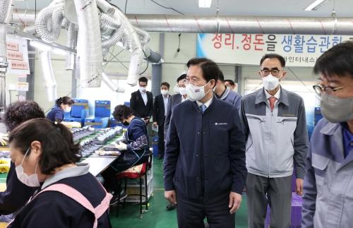현재 울 소재 천연 갑피, 폐플라스틱 재활용 끈, 사탕수수 기반의 바이오 플라스틱 등을 소재로 생산한 제품을 미국의 친환경 신발 유니콘기업인 ‘올버즈’에 독점 공급하고 있다. 성 장관은 “일자리 창출과 함께 계획된 투자를 차질없이 이행해 국내 복귀의 우수 사례가 되도록 노력해 달라”고 당부했다.