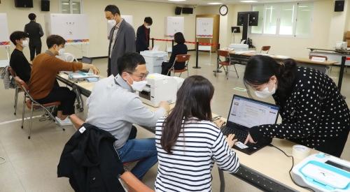 4·7 부산시장 보궐선거 사전투표를 하루 앞둔 1일 오후 부산 연제구 연산6동 행정복지센터에 마련된 사전투표소에서 마지막 투표 점검이 진행되고 있다. 사전투표는 2일과 3일 오전 6시부터 오후 6시까지 진행된다. 정종회 기자4·7 부산시장 보궐선거의 사전투표가 시작되는 2일 양강 후보를 비롯한 후보자 대부분이 투표에 나선다.