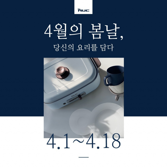 주방가전 엔유씨전자가 따뜻한 봄날을 맞아 오는 18일까지 최대 36% 할인 혜택을 제공하는 '4월의 봄날, 당신의 요리를 담다' 기획전(사진)을 진행한다고 2일 밝혔다.