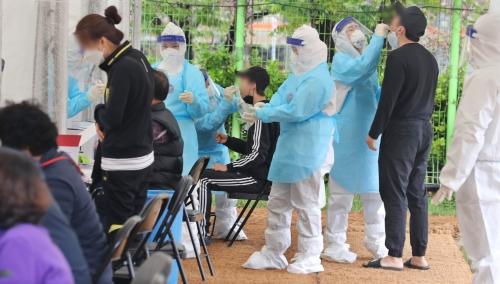 4일 부산 사하구 신평레포츠공원에 설치된 코로나19 임시선별검사소를 찾은 시민들이 검사를 받고 있다. 사하구는 최근 확진자가 급증하자 10일까지 다시 임시선별검사소를 운영키로 했다. 강선배 기자 ksun@
