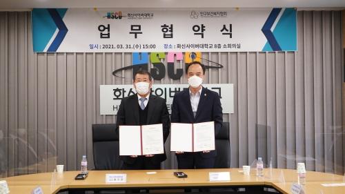 인구보건복지협회 부산지회(본부장 김형곤·오른쪽)와 화신사이버대학교(총장 황주권·왼쪽)는 최근 상호 인적 교류 활성화와 출산 친화 환경조성 사업 활성화를 위한 업무 협약을 체결했다. 이날 양 기관은 우수한 기술 인력 공급과 산학 협력 등 유기적인 관계를 통해, 출산 친화 환경조성과 부산의 출산 양육 인프라 구축에 협력키로 했다. 이재희기자 jaehee@