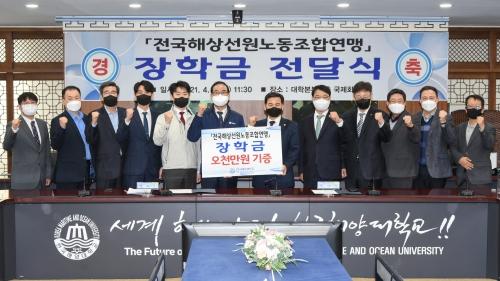 선원노련은 해기사를 양성하는 한국해양대와 목포해양대 해사대학 학생 각 20명(1인당 250만 원)을 선발해 총 1억 원의 장학금을 전달한다고 밝혔다. 먼저 5일 오전 선원노련은 부산 영도구 한국해양대를 방문해 장학금 전달식을 열고 도덕희 총장에게 5000만 원을 전달했다.