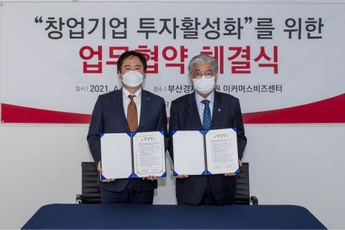 부산경제진흥원(원장 박기식·오른쪽)과 BNK벤처투자(대표이사 도승환·왼쪽)는 지난 1일 서면 한신밴 건물 3층 전자상거래 창업기업 인큐베이팅 시설인 e-커머스비즈센터에서 ‘부산지역 창업기업 투자활성화’를 위한 업무협약식을 가졌다.