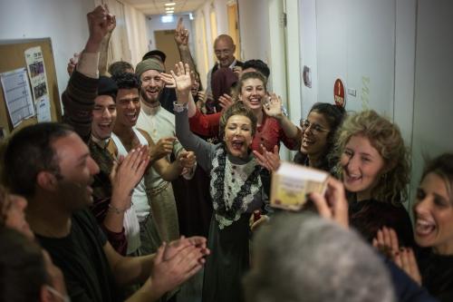 이스라엘 텔아비브에 있는 국립극장 하비마에서 4일(현지시간) 코로나19 규제 완화로 공연 재개가 허용되자 배우들이 무대에 오르기 전 환호하고 있다. 이날 공연은 코로나19 백신을 맞은 관객만 입장이 허용됐다. AP연합뉴스연합뉴스코로나19 백신접종을 통해 ‘집단 면역’을 선언했던 이스라엘군(IDF)이 개인용 방역 수단인 마스크를 벗는 실험에 돌입한다.