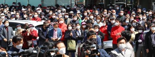 부산시장 보궐선거를 이틀 앞둔 5일 오후 한 후보의 유세 현장에서 시민들이 후보의 연설을 관심 있게 지켜보고 있다. 방역 당국은 선거 유세 과정에서 대인 간 거리 유지와 마스크 착용 등 개인 방역수칙 준수를 권장하지만 유세를 위해 실외 공간에서 5인 이상 집합하는 경우는 사적모임 금지 등에 해당하지 않는다고 밝혔다. 정종회 기자 jjh@4·7 재·보궐선거 레이스가 6일 자정 마무리되고, 하루 뒤 시민들의 최종 선택만 남겨 두고 있다. 이번 선거는 대한민국 1·2 도시 수장을 한꺼번에 교체하는 데다, ‘대선 전초전’ 의미까지 더해지면서 여야 모두 사활을 건 총력전을 펼쳤다.