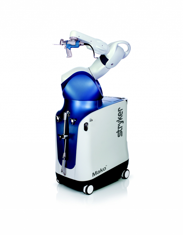 이때 고려해 볼 수 있는 것이 로봇 수술이다. 현재 가장 발전한 무릎 인공관절 로봇은 ‘마코’라는 장비다. 글로벌 의료기기업체인 미국의 스트라이커사가 만든 로봇이다.