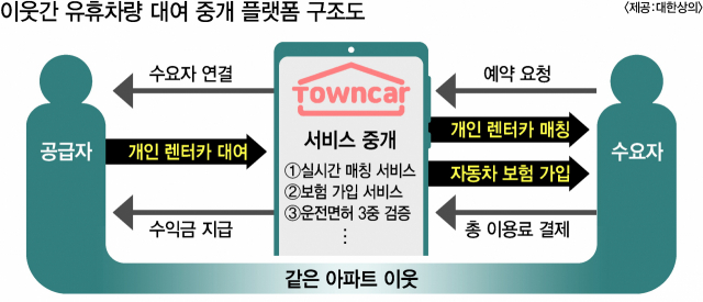 12일 과학기술정보통신부(과기부)에 따르면 최근 대한상공회의소 샌드박스지원센터와 정보통신기술(ICT) 샌드박스 심의위원회를 열고 ‘이웃 간 유휴 차량 대여 중개 플랫폼’ 서비스를 승인했다. 이웃 간 차량 대여 서비스는 스타트업 (주)타운즈 측이 운영하는 ‘타운카’ 플랫폼이다. 국내 최초로 사업자가 아닌 개인이 소유한 차량을 유료로 대여할 수 있게 된 것이다.