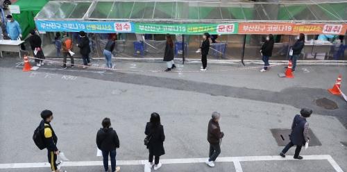부산지역 코로나19 확진자가 55명 발생한 14일 부산 부산진구보건소 선별진료소에서 시민들이 코로나19 진단검사를 받기 위해 순서를 기다리고 있다. 강선배 기자 ksun@부산 기장군청이 코로나19에 따른 공공 도서관 열람실 운영 중단을 장기화하자 취업 준비생 등을 중심으로 과잉 대응이라는 반발이 제기되고 있다. 기장군청이 아스트라제네카 백신 접종 보류 대상을 ‘60대 이상’까지 확대하려고 시도한 사례(부산일보 4월 9일 자 8면 보도)처럼 자체 방역 기준을 과도하게 적용하려 한다는 비판이 나오는 것이다.