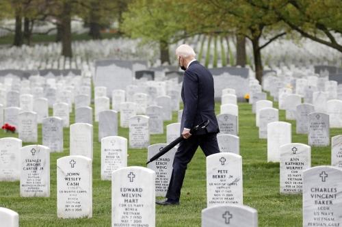 조 바이든 미국 대통령이 14일(현지시간) 버지니아주 알링턴국립묘지의 ‘제60 구역’을 방문했다. 60구역은 2001년 9·11 테러 이후 벌인 ‘테러와의 전쟁’으로 순직한 장병들이 묻힌 곳이다. UPI연합뉴스미국이 아프가니스탄에 주둔 중인 미군을 오는 9월 11일 이전까지 완전히 철수하겠다고 밝혔다. 미국의 ‘최장기 전쟁’으로 기록된 아프간 전쟁이 2001년 9·11 테러 발생 20년 만에 사실상 끝을 맺게 되는 것이다. 북대서양조약기구(나토)도 아프간 주둔 연합군을 철군하기로 했다.