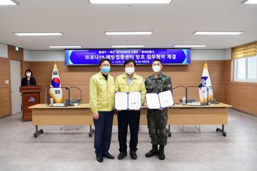 부산 동래구청(구청장 김우룡)과 육군 7508부대 4대대(대대장 임기중), 동래경찰서(서장 정명시)는 최근 ‘코로나19 예방접종센터 방호 업무 협약’을 체결했다.