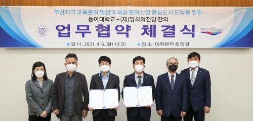 동아대학교(총장 이해우)와 (재)영화의전당(대표이사 방추성)은 최근 부산지역 교육문화 발전과 복합 문화산업 중심도시 도약을 위해 업무 협약을 체결했다.